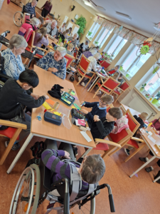 V minulém týdnu zavítali do našeho Domova žáci ze ZŠ Meziboří. Starší žáci potěšili přítomné hudebním vystoupením – zazpívali a zahráli na hudební nástroje. Mladší děti se zapojily do společných aktivit s uživateli Domova. Společně si zahráli oblíbené obrázkové Bingo a pustili se také do tvoření jarních dekorací. Ty nyní zdobí okna Domova a připomínají krásné chvíle strávené při tomto setkání. Děkujeme všem dětem za milou návštěvu, čas, který nám věnovaly, i za krásné dárečky. Už nyní se těšíme na další společné setkání.
